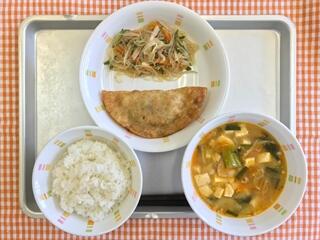 ごはん いかのチリソースかけ こんにゃくサラダ わかめとたまごのスープ 牛乳