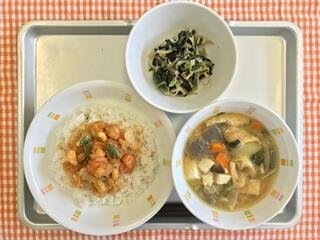 チキンライス 野菜のレモン酢和え 秋野菜のクリームシチュー 牛乳