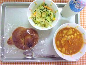 週明けなのもあり、今日は1年生が盛り付けやすい献立にしています。