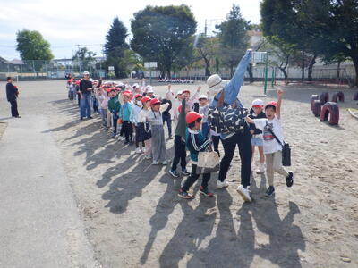 子供たちの歩行を見守ってくださる「潤ファミ先生」です。