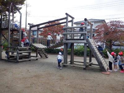 ふと見ると、遊具でたくさんの子たちが遊んでいます。