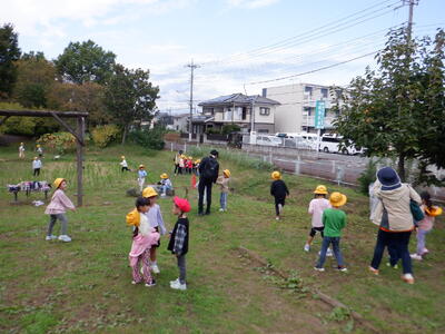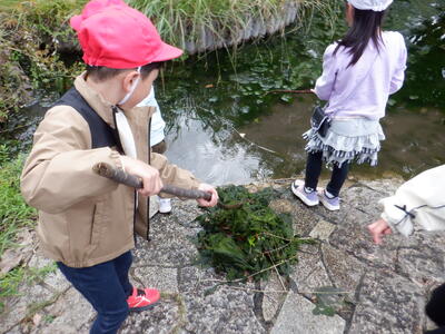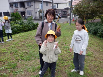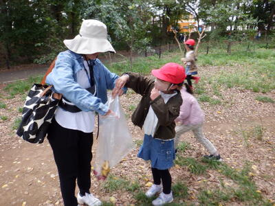 秋探しではなく、公園内の清掃活動にいそしむ子供たちです。(苦笑)