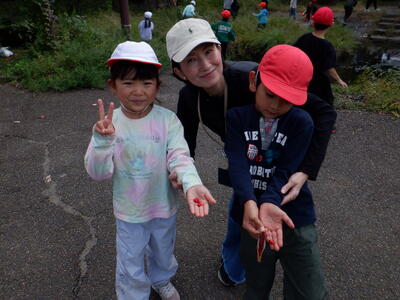 しかし、「潤ファミ先生」ときれいな落ち葉を探して楽しんでいる子もいます。