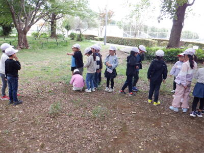 昨日、他市で生活科見学中の1年生がハチに刺されたとの報道があったこともあり、子供たちを活動させる前に担任たちが公園内を回って、危険箇所がないか慎重に確認します。