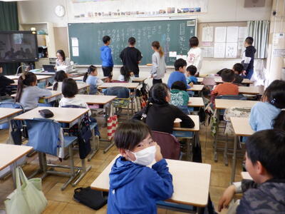 いつものように「さんぽ」の音楽に乗せて、放送委員がたて割り班活動の教室への移動を促します。