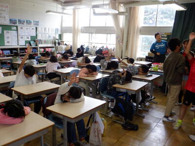 集会委員司会「それでは、1-3の担任の先生、答えをお願いします。」