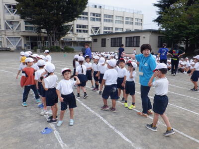 おとなしく大玉送りの場所まで移動していく1年生たち。