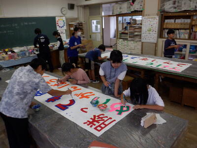 運動会実行委員会で決めた今年のスローガンを当日掲示できるように準備を進めています。