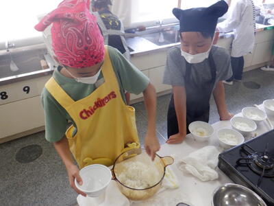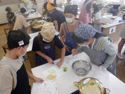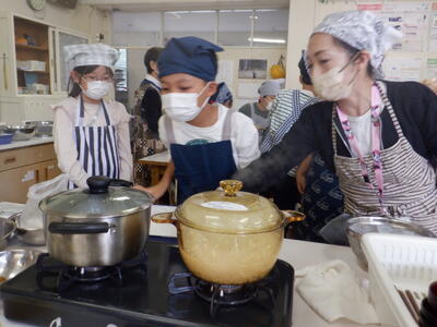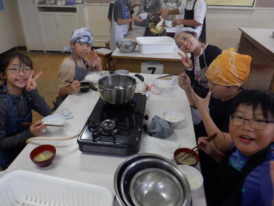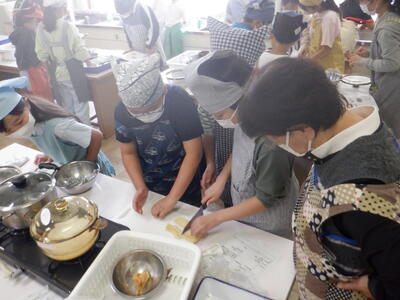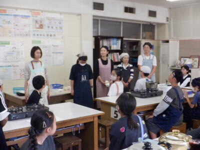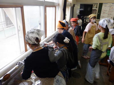 5年生の調理実習は、「潤ファミ企画」として、お料理好きな潤徳ファンの方々にも潤ファミ先生としてご協力いただいています。