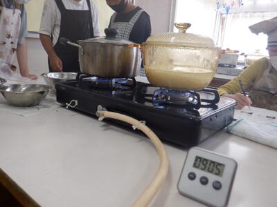 家庭科室の鍋は透明で、中の様子が見えるようになっています。
