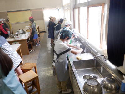 今日は5-3の調理実習でしたが、上の写真のとおり、昨日の5-2の調理実習の際も多くの潤ファミ先生の皆様においでいただきました。