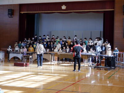 体育館では、学芸会の練習が始まっています。今日の1時間目は、3年生が音楽の練習を行っていました。