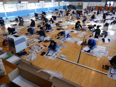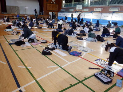 全員が書き始めると、体育館全体が静かになってきます。集中している証拠です。