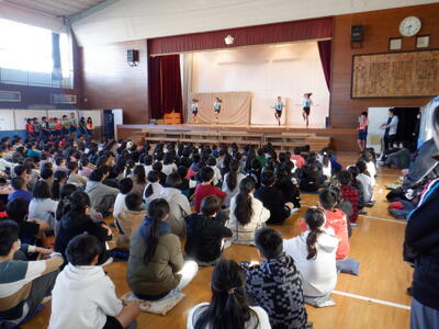 最初は、毎年行っているポップコーンの音楽に合わせたリズム縄跳びの紹介です。