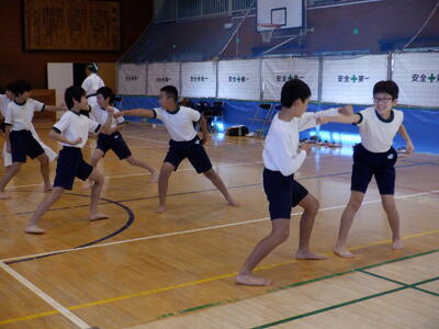 先週の金曜日に、5年生は、空手を体験しました。