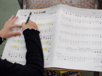 子どもたちの持っているこの譜面は、ドレミの歌のボディーパーカッションの譜面です。