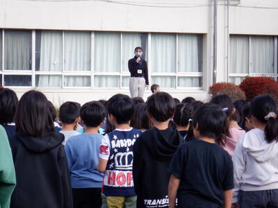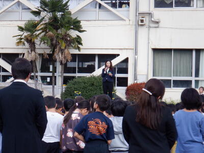 今日は、気候も良く、校庭でお話を聞くには快い日よりでした。