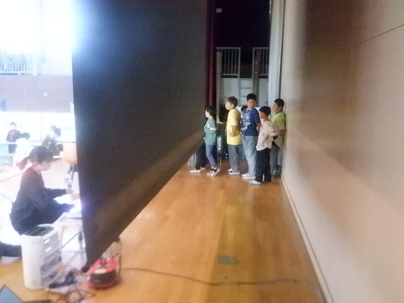 ↑ 5年生舞台裏の様子です ↓ 舞台から客席はこのように見えます