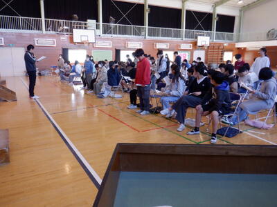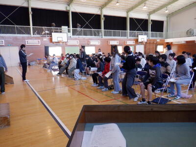 自分の席で、一人一人が話をする順番に複数のグループに分かれて起立をするタイミングを確認していきます。