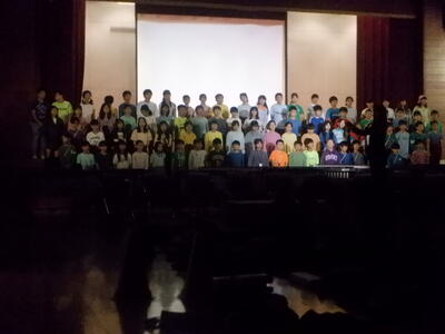 ↑ 5年生舞台裏の様子です ↓ 舞台から客席はこのように見えます