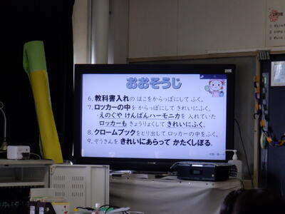 今日は、校内を回ってみると、各学級で、片づけ、整理整頓、通知表渡し、などを行っていました。