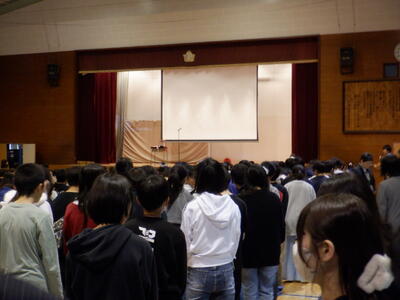 最後に、校歌斉唱。そして、生活指導の先生のお話でした。