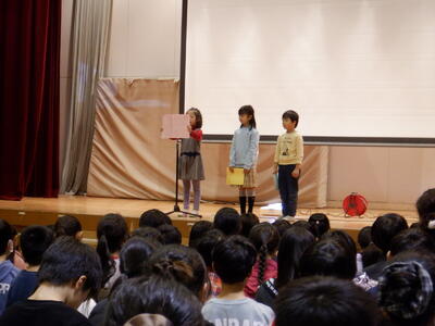 3年生以上の各クラスの代表が、工夫を凝らして、出し物の紹介をしていました。