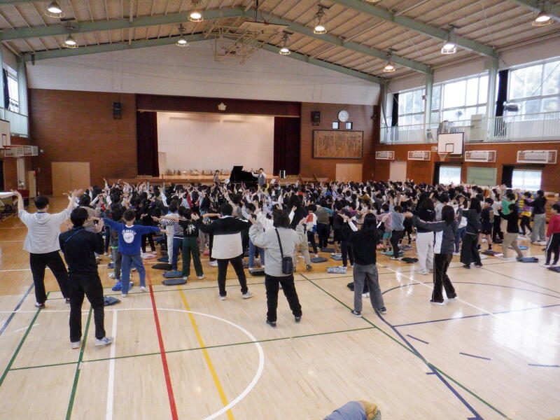(そのため、3校時は、授業公開はありません。体育館にお集まりください。)