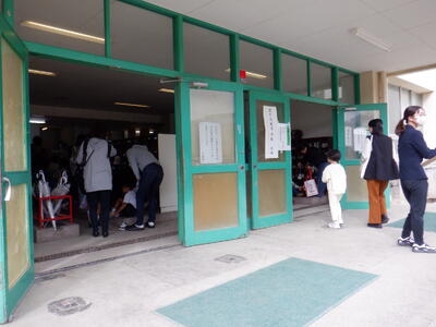 昨日、来年度の新一年生を対象にした、就学時健診が行われ、子供たちがお家の方と一緒に来校しました。