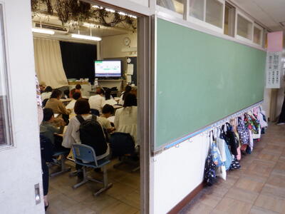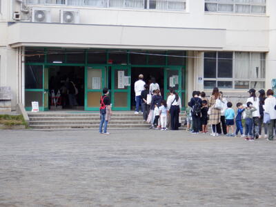 初めて小学校の校舎に入る子も多く、わくわくとどきどきの入り混じった顔つきでお家の方と一緒に校内を歩いていました。