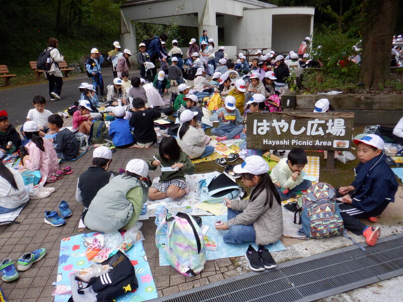 はやし広場でのお弁当タイムでは、みなさん色とりどりのお弁当を満面の笑顔で食べていました。今回は、食べられる分のおやつを持って来て良いことになっていました。これも子供達の大きな楽しみとなっていました。
