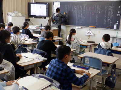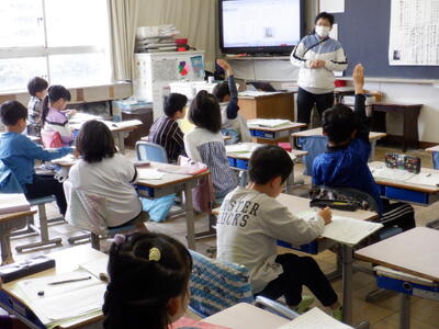 3年生の国語では、物語文「一つの花」の最後の場面です。ひとりぼっちで公園にいるちいちゃんにについて話し合い、最後にこの物語で作者が伝えたかった事について話し合っていました。ちいちゃんのこと、世界が変わったこと、昔の戦争を伝えたい、平和になったこと、今の良さを伝えたいなど様々な意見が出ていました。この物語も昔から教科書に掲載されているので、ご存じの方も多いと思います。