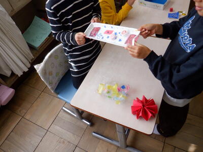 2年生で、1年生を招待しての、おもちゃ遊びの会がありました。