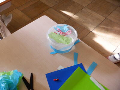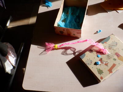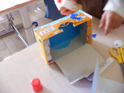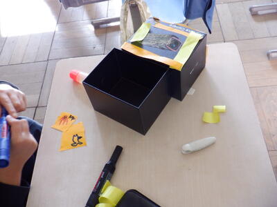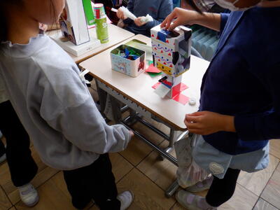 別のクラスの1年生は、「たいせつぼっくす」として、自分の大事なものを入れる箱を作っていました。