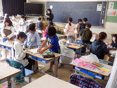 3年生の教室に行くと、子どもまつりの準備をしていました。