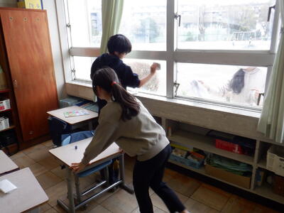 壁に残っている画鋲の芯を抜いたり、普段なかなか行えない窓枠の上の方を雑巾がけしたりと、色々な活動を行ってくれました。
