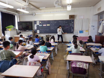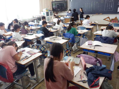 3年生の国語では、物語文「一つの花」の最後の場面です。ひとりぼっちで公園にいるちいちゃんにについて話し合い、最後にこの物語で作者が伝えたかった事について話し合っていました。ちいちゃんのこと、世界が変わったこと、昔の戦争を伝えたい、平和になったこと、今の良さを伝えたいなど様々な意見が出ていました。この物語も昔から教科書に掲載されているので、ご存じの方も多いと思います。