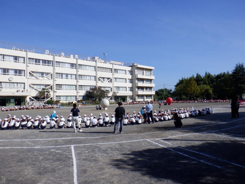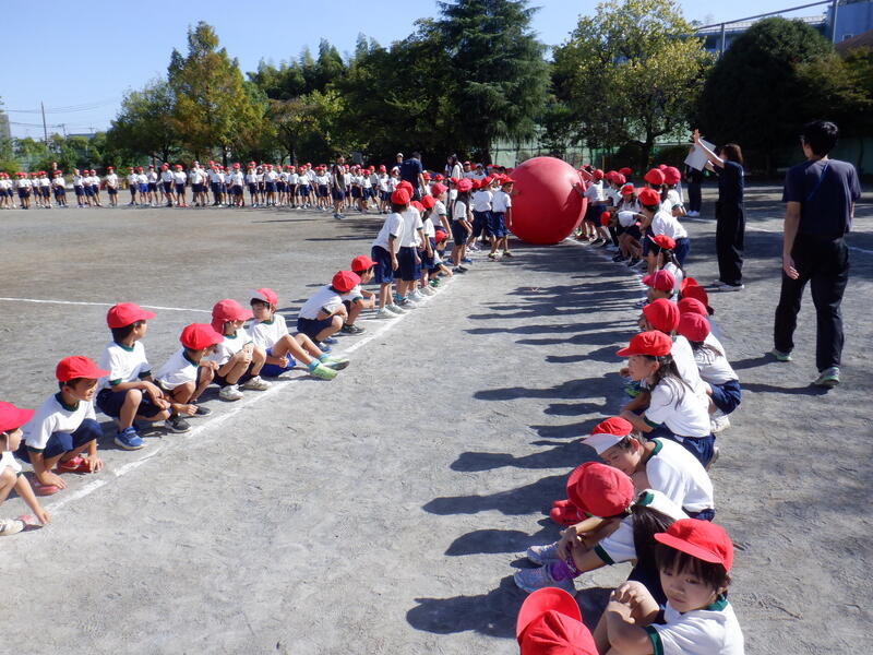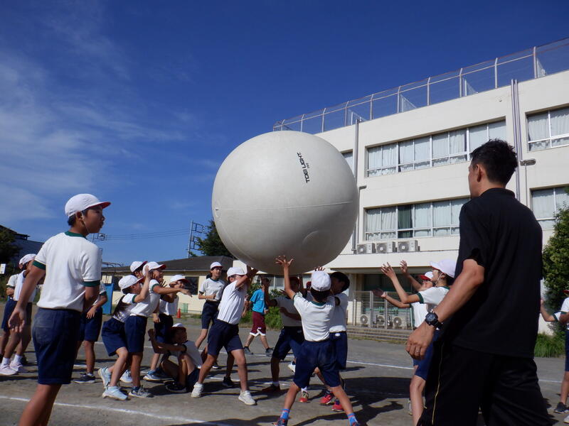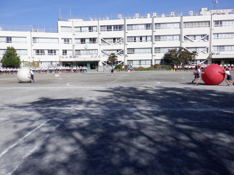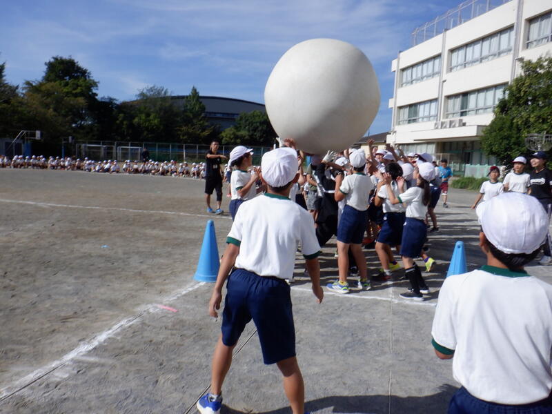 今朝は今日に繰り上げられた全校練習が行われました。子供達も楽しみにしていた全校競技「大玉送り」の試し試合をすることができました。