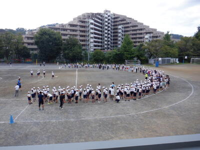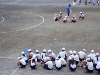 そこで今朝は、予定を変更して、木曜の朝に予定していた全校種目の大玉送りの練習を行いました。