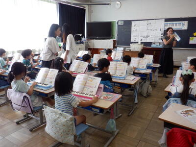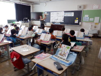 1年生は、鍵盤ハーモニカの練習が始まっています。初めての五本指全てを使っての練習です。