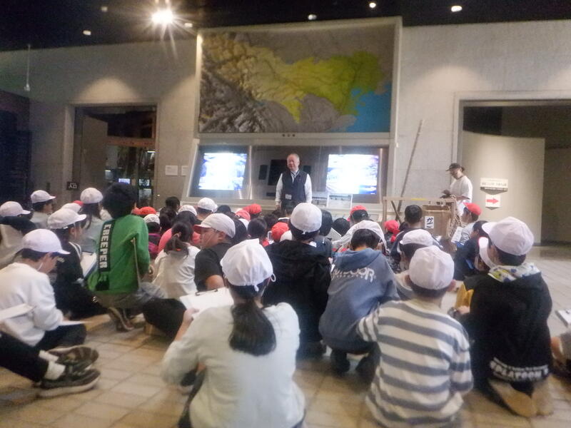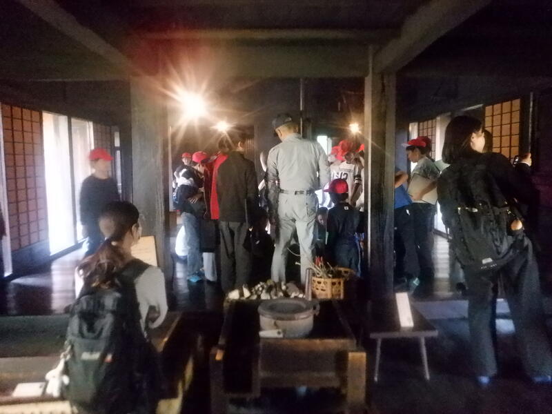 右の写真は下田家という古民家の移築復元の見学の様子です。水道もガスもない時代の家ですので、水は汲んで運んでくる、運ぶのが大変だから無駄なく使うようになっていること、かまどやいろりで火を起こし、火力で暖を取り調理したことを実物から学びました。