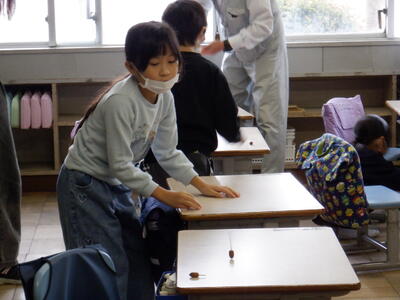 1年生は、生活科で、「どんぐりクラブ」の方をお呼びして、どんぐりごま作りを行いました。