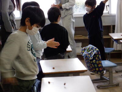 朝、登校すると、自分の教室の前の廊下に、かわいい虫の絵の画用紙がいくつも置いてあったら、2年生はどんな反応をするでしょうか。