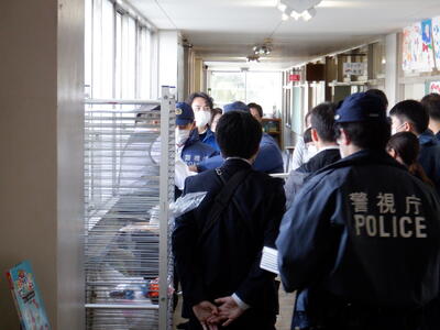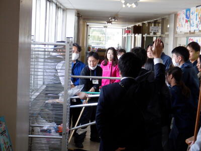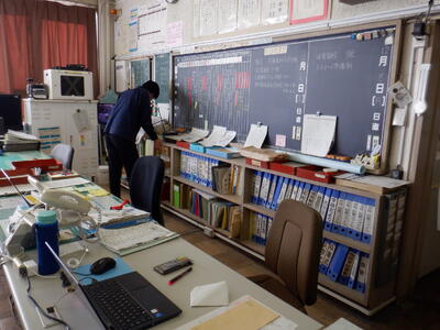 校内に不審者が来たことを、暗号で全校に連絡します。