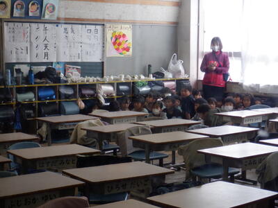 5年生のクラスに行くと、先生がガムテープをもってお話をしていました。