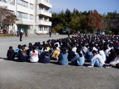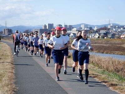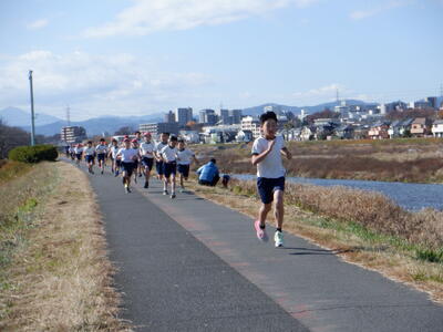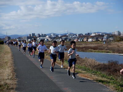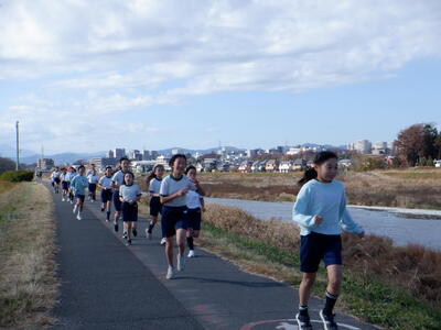 今日は、持久走記録会の日です。気温は低めですが、お天気に恵まれて快晴となり、走りやすい日となりました。