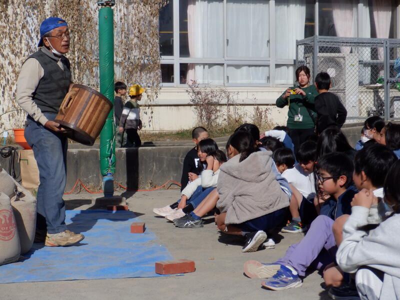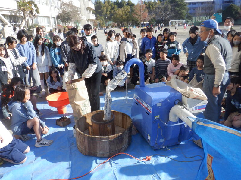 4年生の児童は、春に田植えをし、稲の生長を見守り、実がなり、刈り取って天日干しし、脱穀するところまで見届けてきました。