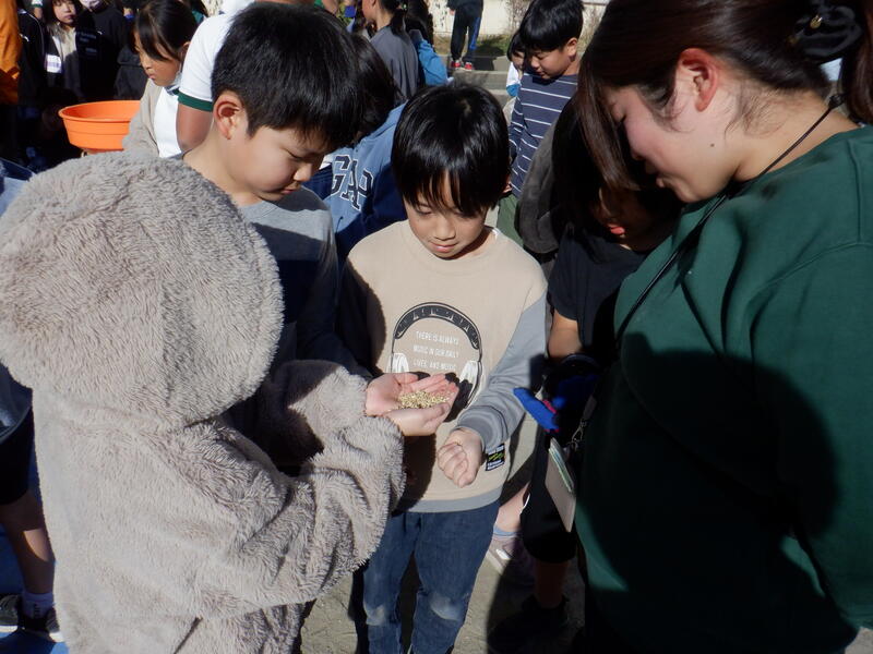 その小粒のお米を手で受け取り、大喜びの4年生でした。