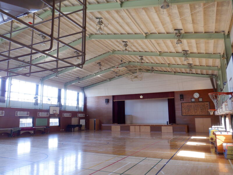 長い間囲われていた体育館内の壁沿いのフェンスも取り除かれ、エアコンの吹き出し口がたくさん設置されました。