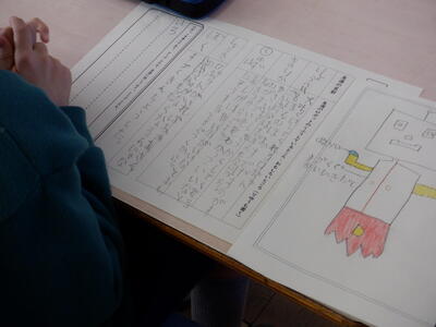 今日は、自分が考えたロボットについてまとめ、発表していました。